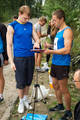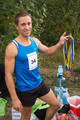 Бегающий организатор Роман Харченко демонстрирует награды