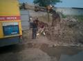 Горвоводокал срубывает живые деревья и ветки и делает из них укрепления котлована