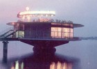 На набережной Днепра появилось необычное архитектурное сооружение на воде, похожее по форме на летающую тарелку: ресторан Поплавок.