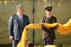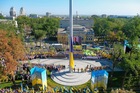Впервые в истории торжества ко Дню Государственного Флага Украины стартовали не в столице, а в Днепре. В днепровском небе поднялся сине-желтый флаг размером 12 на 18 метров и весом в 23 кг. Его на самый высокий в стране флагшток поднял лично Глава государства Петр Порошенко. |