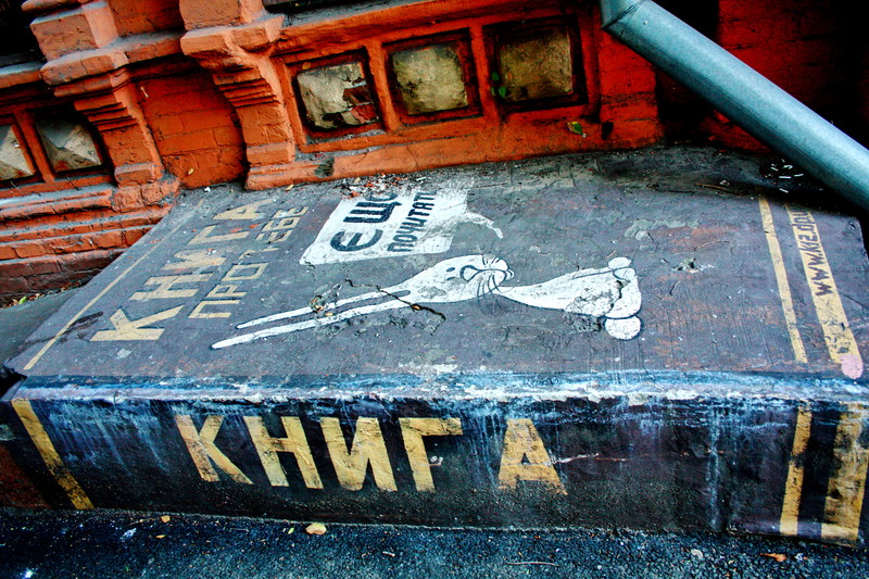 (Днепропетровск-читающий город. Стрит-арт на ул. Комсомольская)