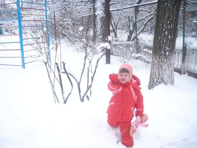Это моя дочка Ксюша в заснеженном садике, ее улыбка так заразительна, что тоже хочеться всегда улыбаться