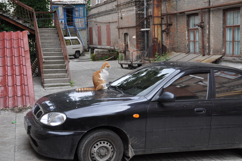 :) Да, нет, тогда еще тепло было. Он почему-то очень полюбил эту машину. Каждый день вылазил и то спал, то вот так сидел :)))))))))