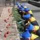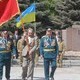 Ветераны торжественно прошли к мемориалу под музыку оркестра. Внесли государственный флаг Украины и копию знамени Победы.