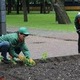 После дождя в сквере Ленина кипит работа, озеленители высаживают цветы на клумбы со стороны парка им. Лазаря Глобы. Сегодня они посадят 1200 сальвий и 360 канн.
