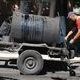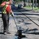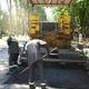 Рабочие ЧП "Сегмент" укладывают асфальт на участке дороги от пересечения проспекта Аношкина с проспектом Ленина (возле фонтана) и продвигаются вверх по Ленина.