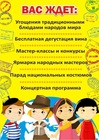 Вниманию гостей участники фестиваля представят национальные традиции разных стран, а именно: Украины, Польши, Грузии, Армении, Азербайджана, Беларуси, Франции, Италии, Израиля, Индии, Венгрии, Италии и многих других.