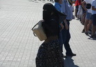 Недоумение у некоторых присутствующих на митинге людей вызвало появление незадолго до его начала женщины в хиджабе. Она на ломаном английском якобы пыталась выяснить, где находится военкомат. Изначально смутил тот факт, что исповедующие ислам женщины полностью скрывают свое тело, а не носят сетку, едва скрывающую оголенную талию загадочной гостьи. Поэтому изначально кроме улыбки и непонимания названная некоторыми СМИ «подставной террористкой» (была послана якобы для проверки реагирования правоохранительных органов на личностей, ведущих себя подозрительно) женщина не вызвала. Дополнительным доказательством ее абсолютной безобидности и актерской игры стало игрушечное ружье, врученное представителями общественных организаций. Сотрудники милиции, обеспечивавшие охрану митинга, отреагировали на данный «маскарад» адекватно.