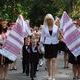 Первыми с ключом и своим учителем в здание УВК № 25 вошли первоклассники.