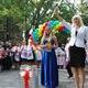 На торжественной линейке, посвященной 20-летию УВК, прозвучал гимн Украины. Своим "танцем цветов" учеников приветствовали дошкольники.