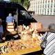 Сегодня на площади Дзержинского разворачивается праздничная ярмарка. Устанавливаются импровизированные торговые ряды, на которых покупателям предлагаются фрукты, овощи, мясо, рыба, различные сопутствующие товары и даже деревянные поделки.