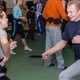 Ребят разбили на пары. Одному – резиновый нож, другому – муляж пистолета. По команде спектакль начался. «Я здесь, чтобы помочь. Вы готовы сотрудничать? Пожалуйста, соблюдайте дистанцию», - говорит субтильная девочка, выставив правую ладонь вперед и отходя маленькими шажками от крупного оппонента. «Левой рукой показывай дистанцию, - объясняет тренер Сергей. – Ты же правша – у тебя кобура справа». «Когда хулиган тянется к ножу – это значит, что он может напасть, - объясняет другой инструктор. – Если он правша, обходи его справа». В этот момент пара «копов» уже обезвредили противников. «Несколько днепропетровцев спасены!», - подбадривает учитель.