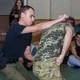 Курсанты как раз выпрыгивали из положения лежа, со смачным хлопком в ладоши, когда мы их и застали. И по новой: упали, встали, хлопок, упали, встали, хлопок. В спортзале весь пол устлан татами. На нем 20-30 парней и девушек. У них разминка перед уроком защиты от нападения ножом. «Этот тренинг очень важен на начальном этапе, - объясняет инструктор по тактической подготовке Александр Комиссаров. – Он психологически готовит курсантов к философии патрульного. Это имитация обычного контакта с правонарушителем на улице. Нужно соблюдать процедуру, правильно вести диалог, держать дистанцию. А когда хулиган попытается ударить ножом - увернуться и достать из кобуры пистолет».