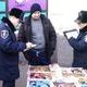 После прибытия следователей мужчина, которого, как выяснилось, зовут Денис Андриевский, начал упаковывать товар. Полицейские составляют опись. "Оце так хлопці наїдяться конфет на Новий рік!", - глядя на происходящее замечают прохожие.