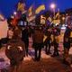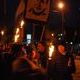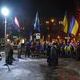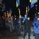Размахивая флагами - национальными и с символикой ВО "Свобода" - марширующие дружно скандируют: "Наша земля - наши герои!", "Пам’ятай чужинець – тут господар українець!", "Комуняку - на гілляку!" и т.д. Над головами идущих возвышается плакат с портретом Президента Украины Петра Порошенко с пулей во лбу.
