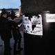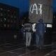 Около десяти молодых людей наклеили на многострадальный постамент фотографии с изображением своего кумира, аккурат на место снимков жертв репрессий, сорванных с памятника днем неизвестными блюстителями советской морали. Фото Скрябина рядом с надписью "Вбиті Дзержинським" смотрится весьма колоритно...