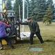 Рабочие говорят, что табличка весит примерно 300 кг, поэтому задача будет не из легких. Попутно рабочие терзают спецтехникой покрытие дорогого газона...
