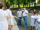 Об’їзд розпочався з міської дитячої лікарні на проспекті Аношкіна. Також у цій будівлі діє амбулаторія, що обслуговує близько 8 тисяч мешканців прилеглого району.