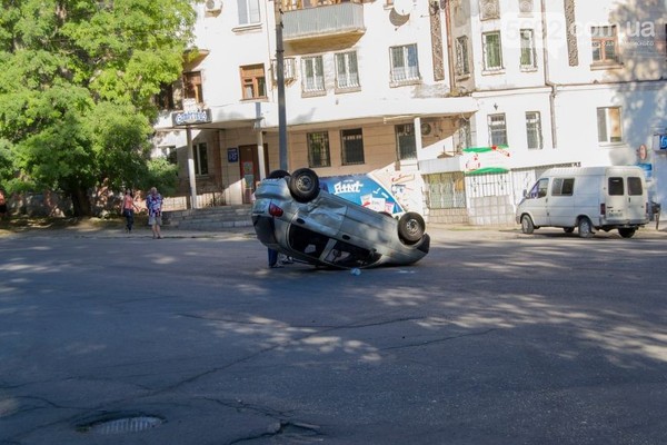 Как удалось выяснить журналисту 5692.com.ua на месте событий, автомобиль Daewoo Matiz ехал по главной в сторону школы № 36. Вниз по улице Ивана Сирко спускался Chevrolet Aveo, водитель которого не пропустил Daewoo. При столкновении Daewoo Matiz, в салоне которого находились женщина-водитель и двое маленьких детей, перевернулся.