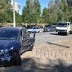Красный Nissan и ВАЗ столкнулись уже после ДТП с Toyota и «KIA». Водители разобрались между собой и уже покинули место аварии.