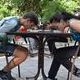 Почти все конкурсанты были школьного возраста. Ребята участвовали в 3-километровом пробеге и горели желанием восполнить потери энергии в организме.