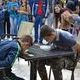 Всех желающих звали поиграть в арбузные шашки. За соблюдением правил следил заслуженный тренер Украины Игорь Губарев. По условиям игры победители шашечного боя забирали себе выигранные арбузы.