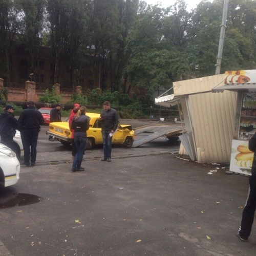 На улице Криворожской пьяный водитель на желтом ВАЗ-2101 въехал в колбасный киоск.