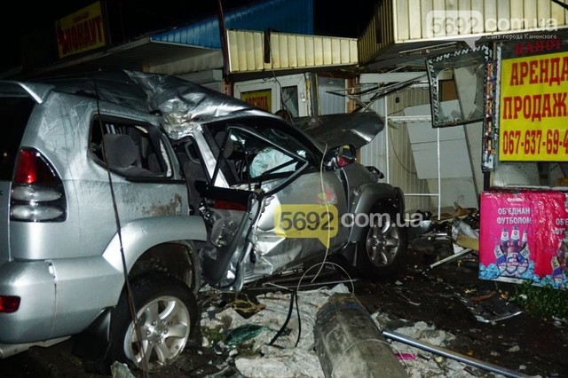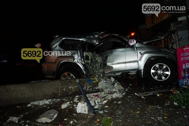 Как удалось выяснить журналистам 5692.com.ua на месте ДТП, джип "Тойота Прадо" двигался со стороны ночного клуба "Украина" по проспекту Василия Стуса (проспект Комсомольский) по трамвайным путям. Недалеко от самой остановки "Заря" водитель потерял управление и машина "юзом" влетела в киоск, зацепив правым боком столб. На момент ДТП в машине было 6 человек. На место происшествия было вызвано 4 автомобиля скорой помощи, 1 машина ГСЧС, 5 патрулей полиции и ремонтная бригада КП "Трамвай".