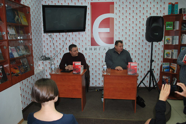 11 октября в книжном магазине Книгарня «Є» была презентована книга «Вторгнення в Україну: хроніка російської агресії», в которой волонтеры «Інформаційного спротиву» попытались обобщить массив информации, накопленный в ходе работы участников этой группы. На встрече с читателями присутствовали два автора этой книги Дмитрий Тымчук и Юрий Карин.