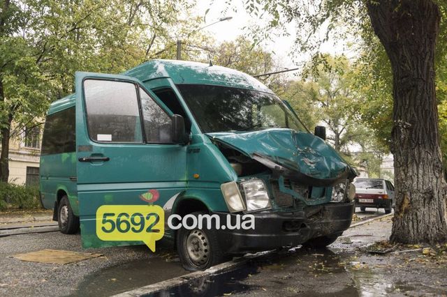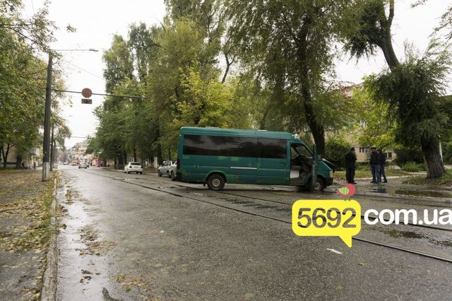 Водитель микроавтобуса Volkswagen LT 35 ехал со стороны проспекта Гимназического (Пелина) по направлению к проспекту Тараса Шевченко (улица Сыровца) и, наехав на скользкие трамвайные рельсы, не справился с управлением и врезался в дерево. В результате аварии пострадали водитель и пассажир микроавтобуса. Пассажир, парень 1993 года рождения, был госпитализирован с переломом бедра. Водитель получил травму головы, однако от госпитализации отказался. На месте продолжают работать полицейские.