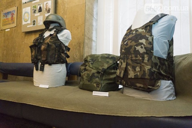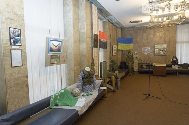Всего выставка насчитывает около 200 экспонатов из коллекций местного музея и Днепропетровском национальном историческом музее имени Д. Яворницкого. Здесь представлены портреты и фото погибших участников АТО, их личные вещи, предметы обмундирования и амуниции. Экспонаты выставки хранят память о Константине Авдееве, Сергее Слисаренко, Эдуарде Панченко и других каменчанах, которые так и не вернулись домой с войны против российских оккупантов. Здесь также представлены вещи ветеранов АТО, которые проживают в Каменском, детские рисунки, часто служащие своеобразными талисманами для военнослужащих, и многое другое.