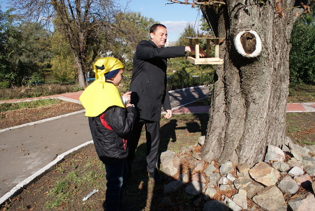 «Шановні діти та дорослі! Я вдячний вам за це свято, яке ви для всіх нас організували. У нас найпрекрасніша природа, і нам потрібно її берегти. Взимку птахам нелегко виживати в місті, добувати їжу, і ті годівниці, які ви зробили на уроках праці, стануть не тільки місцем годівлі для пернатих, а й окрасою парку», – сказав Андрій Білоусов.