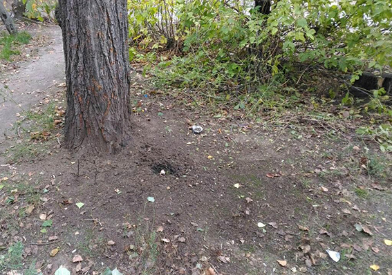 В результате взрыва у многоквартирного дома по ул. Б. Хмельницкого автомобиль «Subaru Tribeca» получил осколочные повреждения левой стороны. Люди не пострадали.