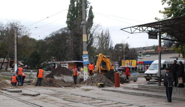 В центре Каменского идут ливневочные работы