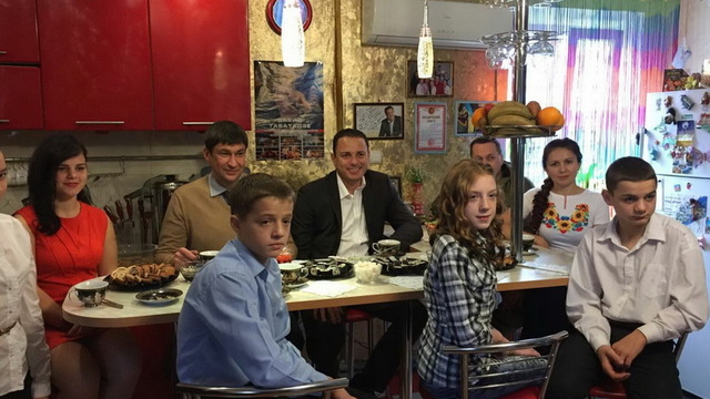 У сім'ї живуть і виховуються 8 дітей. Папа Олександр - учасник АТО, мама Олена - справжня господиня будинку, де завжди панує затишок, спокій і взаєморозуміння. Дітлахи та дорослі були раді гостям і проявленій до них увазі. Вихованці дитячого будинку продемонстрували свої творчі таланти та порадували всіх міні-концертом.