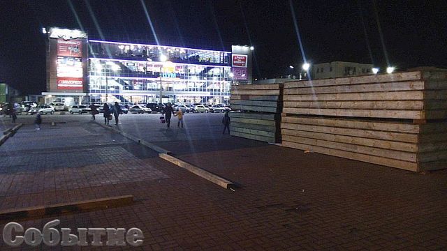 На площадь Калнышевского возле горсовета города Каменское привезены первые элементы ледового катка.
