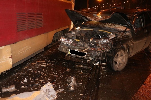 Как рассказали свидетели, водитель автомобиля ВАЗ не справился с управлением. Вследствие этого произошло лобовое столкновение легковушки с трамваем. По предварительным данным, в аварии никто не пострадал.