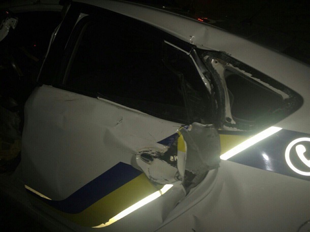 Когда патрульная машина была уже на переезде, ее зацепил проходивший поезд. Степень повреждений пока не известна, жертв нет.