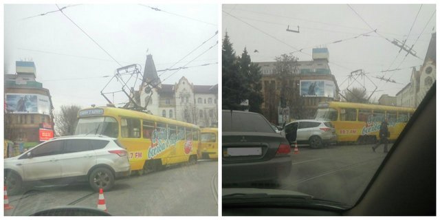 Пострадавших в аварии нет, однако из-за столкновения движение трамваев в обе стороны было временно остановлено.