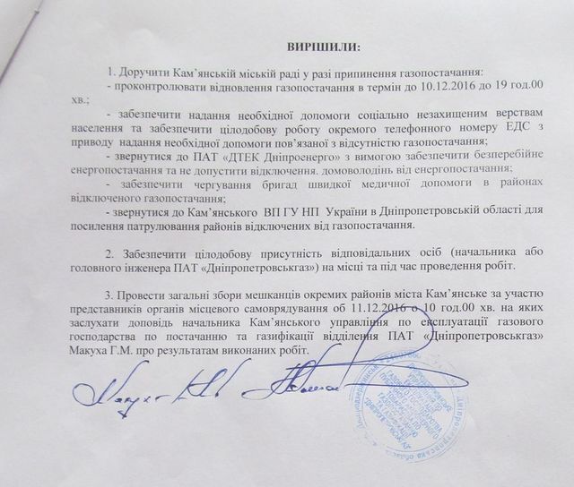 Не имея возможности отменить отключение, жители Романково вынуждены были согласиться на проведение ремонтных работ, однако настояли, чтобы эти работы производились с учетом их интересов. Горожане добились подписания трехстороннего соглашения между жильцами поселка, городским филиалом ПАО "Днепропетровскгаз" и местной властью.