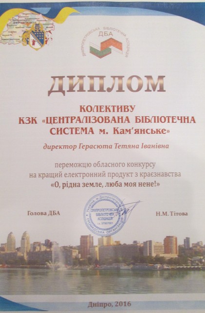 Засідання відкрила директор бібліотечної системи Тетяна Герасюта, яка повідомила приємну новину: Центральна міська бібліотека Кам'янського зайняла перше місце в обласному конкурсі на кращий електронний продукт із краєзнавства «О, рідна земле, люба моя нене!».