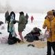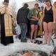 В ополонке окунались все - от мала до велика: пенсионеры, люди среднего возраста и даже школьники. Среди купающихся было много женщин. Выстроилась целая очередь - в маленькую прорубь можно было окунаться только по одному.