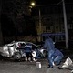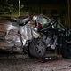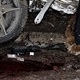 От удара машина превратилась в груду металлолома. Водитель доставлен в больницу в тяжелом состоянии, пассажир погиб: его пронзило металлической оградой, которая так и осталась торчать в автомобиле.