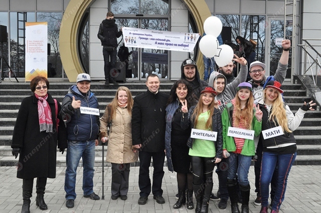 Сегодня общественная организация «Центр поддержки общественных и культурных инициатив «Тамариск» в партнерстве с общественными организациями «Помощь Днепра», «Зов будущего», «От мечты к действию», «Сила будущего», «За будущее Украины» провели уличную акцию и флэшмоб «Каждый имеет право на выборы», сообщает Dnepr.Info.
