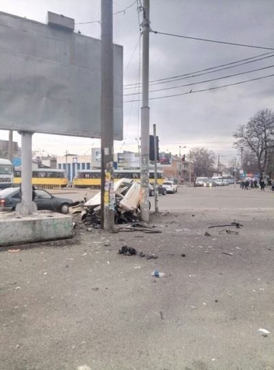 Сегодня около 17:10 на перекрестке улиц Владимира Антоновича (Свердлова) и Рабочей произошла авария: на большой скорости машина врезалась в билборд.