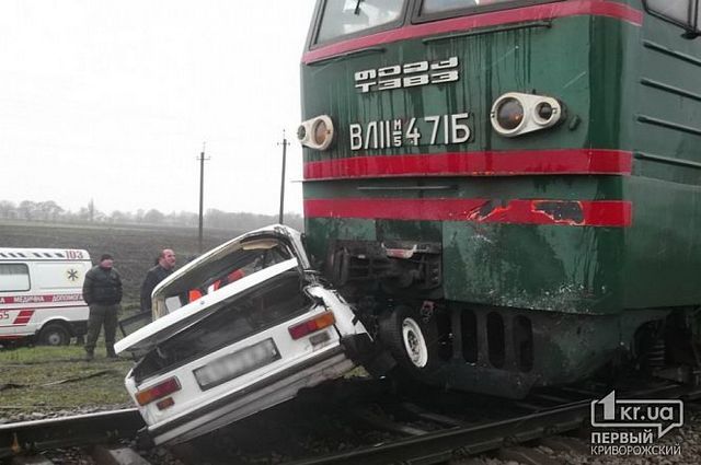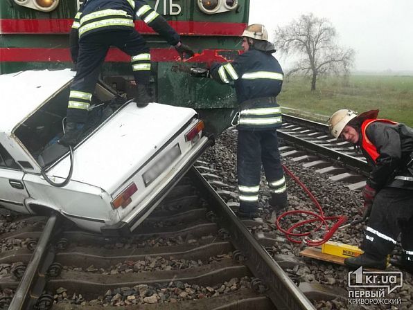 Сегодня, 18 апреля, в Кривом Роге в 12:42 автомобиль «ВАЗ 2101» врезался в поезд.