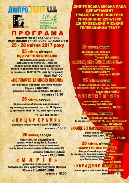 25-28 апреля в Днепре проходит Открытый театральный фестиваль украинской драматургии.