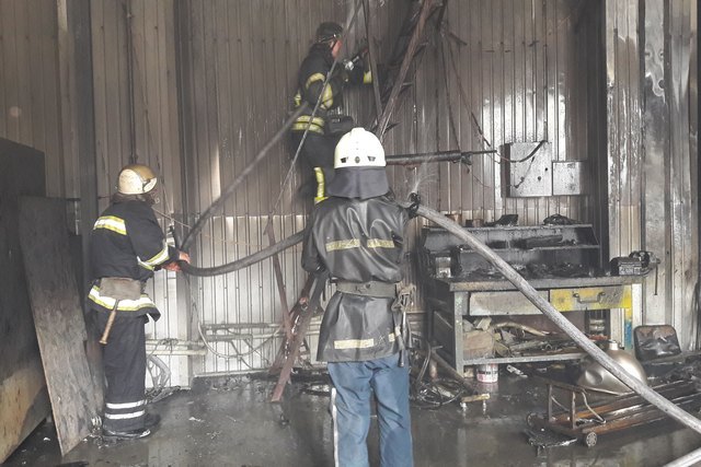 Огнем уничтожено 4 окна, инструменты, автомобиль Mercedes Sprinter и повреждена мебель, станки, вентиляционная шахта, въездные ворота, металлическую облицовку стен и крыши внутри ремонтного бокса на общей площади 150 кв.м.