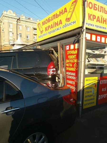 25 мая, на площади Вокзальная автомобиль Toyota Land Cruiser въехал в киоск с мобильными телефонами.