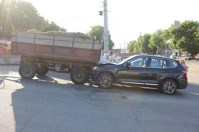 Сегодня, 7 июня, на перекрестке улиц Святослава Хороброго (бывшая Чкалова) и Короленко внедорожник BMW X5 не поделил дорогу с трактором.